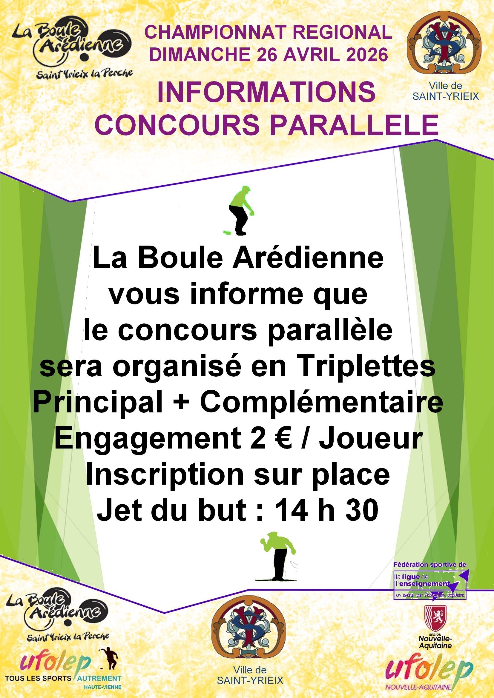 UN CONCOURS PARALLELE AURA LIEU À 14H30 INSCRIPTIONS SUR PLACE OUVERT À TOUS LES LICENCIES UFOLEP
